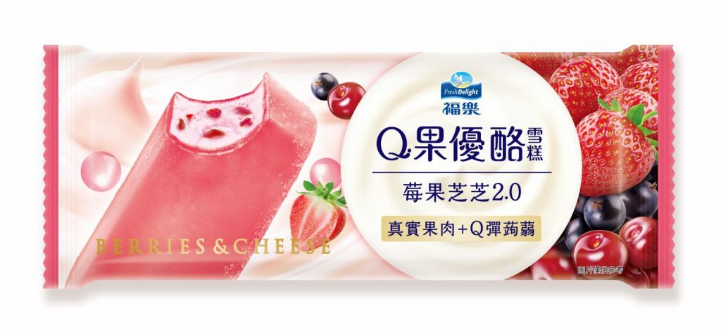 「福樂Q果優酪雪糕」以滑順清爽的優酪為基底,加入真實果肉與Q彈蒟蒻,並點綴淡淡的起司風味,外層再淋上鮮美果汁,創造出酸甜、微鹹又有嚼感的多層次美味,一支不到160大卡,享受美味零罪惡。「福樂Q果優酪雪糕」一次推出兩種口味,「芒果芝芝」,濃郁芒果香氣撲鼻,吃得到豐富的芒果果肉與Q彈蒟蒻;「莓果芝芝」則結合草莓、藍莓和蔓越莓等多種莓果的酸甜,搭配莓果果肉與蒟蒻啵啵,帶來多層次的口感體驗。
