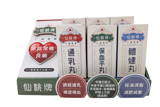 2025年9月,130年中藥品牌「仙桃牌」,旗下三款經典古方──保血平丸、體健丸、通乳丸,以全新包裝全面上架全台580家屈臣氏門市。此次進駐全台最大藥妝通路,仙桃牌將更進一步貼近大眾,讓民眾於日常生活中能更方便取得專業中藥藥品,滿足日常治療需求。