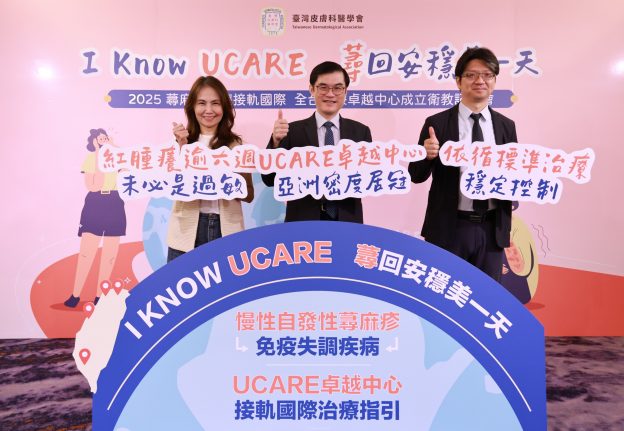 鐘文宏醫師說明,UCARE 認證是為了提升全球蕁麻疹專業照護、臨床交流與研究,自2015年推動至今,全球約50多個國家、僅200餘個醫療機構獲認證,審核過程嚴謹,光是評估就包含診斷、治療、團隊協作、研究與衛教等三十多項。台灣現有四家UCARE 卓越中心分布於北、中、南台灣,這不僅是醫療認證的指標,更是病友安心的後盾,使患者從診斷、治療到追蹤皆同步國際標準,並接受跨科別團隊提供全方位照護;另外,持續累積的臨床經驗與研究數據,作為持續優化團隊照護品質。期待未來有更多台灣醫療院所加入卓越中心行列,攜手提升我國的蕁麻疹照護。